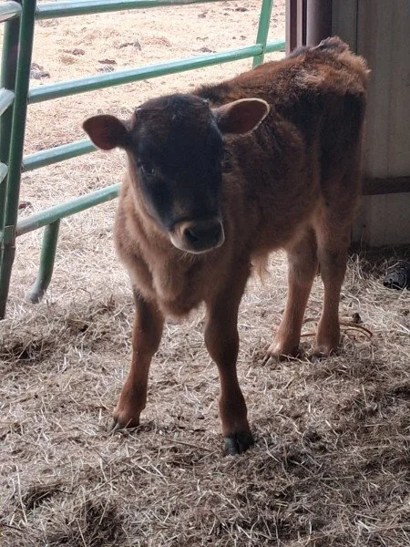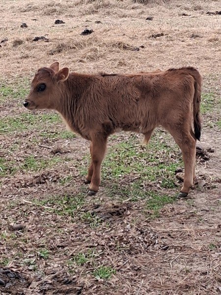 This is Mo’s first calf from Titus. He was born 11/16/2025 and was only 18 inches tall! He should be A1/A2. Testing will be completed soon.